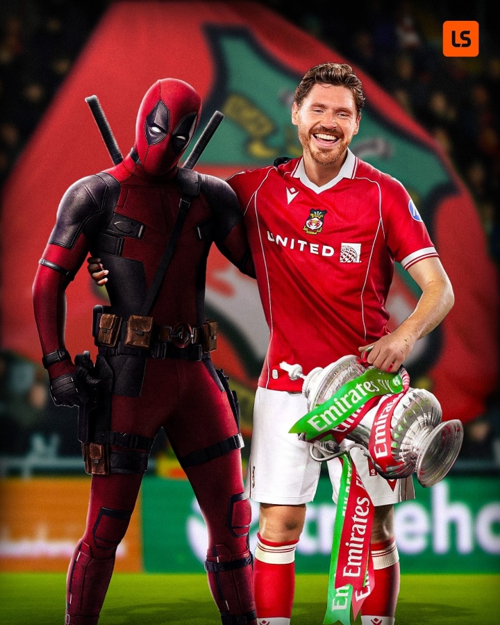雷克瑟姆的传奇故事并不止于此。他们被大众熟知或许是来自于股东瑞安·雷诺兹(死侍扮演者),而本场比赛雷诺兹本人也在现场亲眼见证了这场胜利。